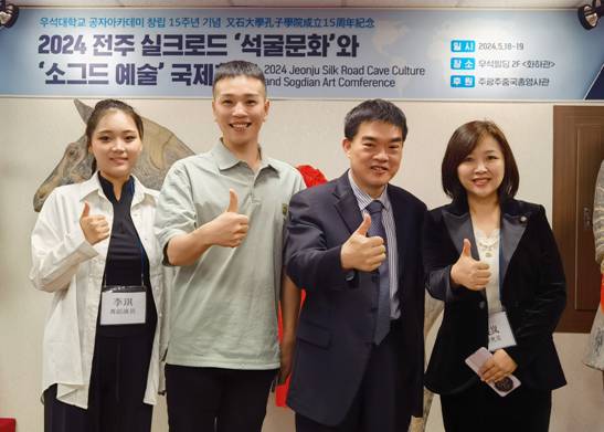 5月18-19日,芙蓉学院艺术与体育系师生参加“2024年韩国全州丝绸之路石窟文化与粟特艺术国际会议”。此次会议由韩国敦煌学会、韩国又石大学、太原师范学院国际丝绸之路文化艺术研究所、敦煌研究院、榆林窟文物保护研究所共同主办。艺术与体育系副主任姚岚带队,舞蹈教师史朋伟、舞编2101班李琪受邀参加演出。