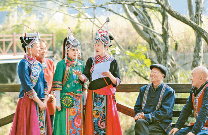 图为2022年11月3日,浙江省湖州市安吉县章村镇郎村的“畲乡新语”宣讲团,为当地畲族村民宣讲党的二十大精神。 人民图片 潘学康/摄