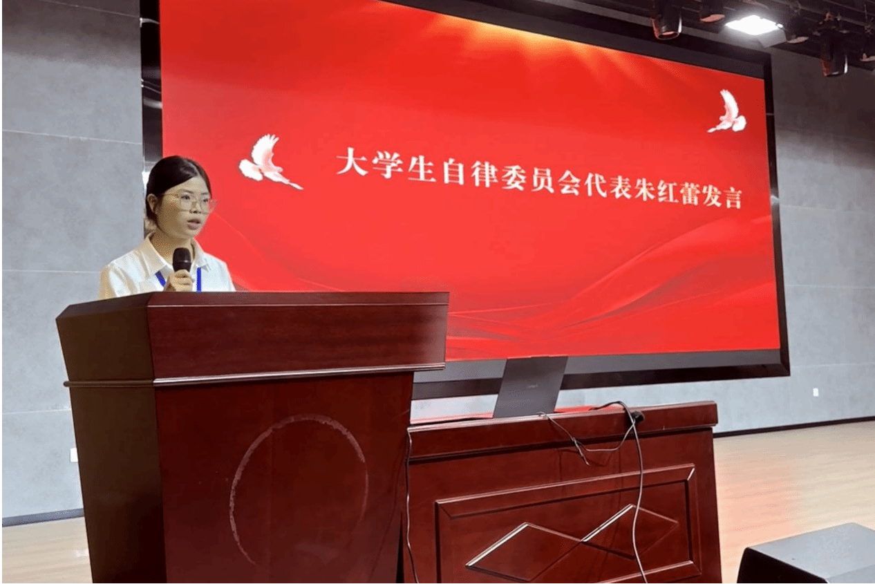 图三 大学生自律委员会代表朱红蕾发言