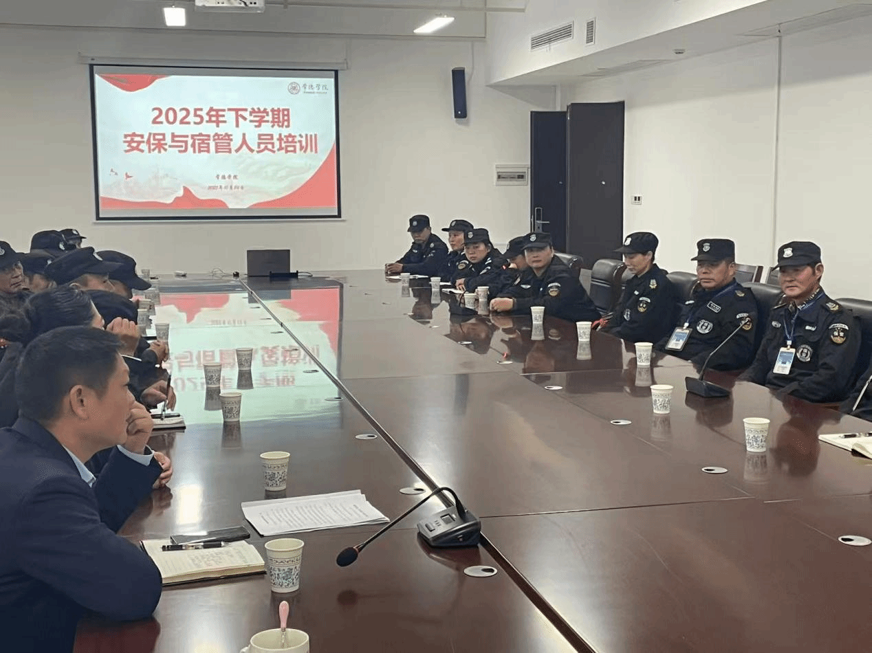 为全面提升安保与宿管队伍专业素养,切实维护校园安全稳定,保障师生学习生活秩序,10月24日,我校后勤建设处、保卫处在精一楼204会议室组织举办了2025年下学期安保与宿管人员专题培训。副校长智凯强、后勤建设处、保卫处处长刘以平,学生处副处长何筱,保卫专干李昶亮,物业公司项目经理孔勇波及50余名安保、宿管人员参会,会议由李昶亮主持。