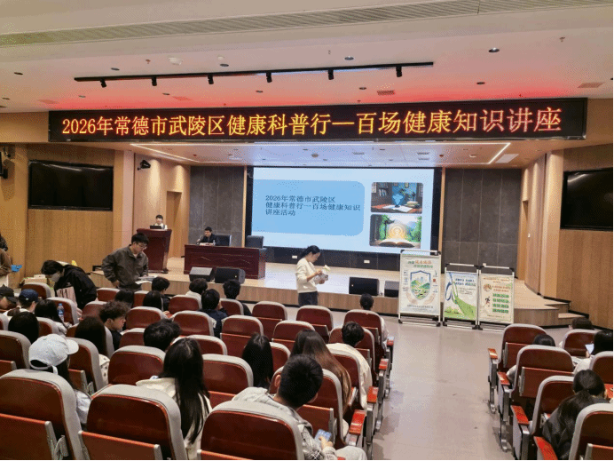 为深入贯彻落实“健康中国”战略,提升大学生健康素养和自我防护能力,2026年4月16日,芙蓉街道社区卫生服务中心应邀走进常德学院,开展了两场主题鲜明、内容丰富的健康科普讲座。本次活动由常德学院后勤建设处、学生处主办,吸引全校近500名师生到场参与。